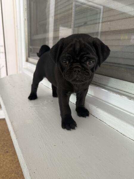 message elviaalvarado about this ad Adorable 7-week-old CKC-registered 1 fawn male, 1 black male and 1 fawn female, puppies born May 2, 2025. Dad is a fawn pug weighing 30 lbs, and mom is a black pug weighing 17 lbs. Both parents have great temperaments, live with us, and are helping raise the puppies in our home. Puppies are being raised in a loving environment around both their parents and people, so theyre well-socialized and used to everyday life. Puppy will be ready for pickup on June 27. We also provide free delivery by car up to 50 miles, after that, it will be $1 per mile. Max, 300 miles. A nonrefundable deposit of $200 is required to hold your puppy. Message us for more information or call/text 336-266-9836 or 336-380-0520. We accept FaceTime calls if requested. |
