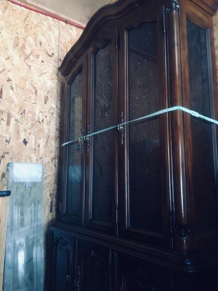 Beautiful wood china cabinet glass shelves lights drawer very heavy wood txt or call for details 2165263006