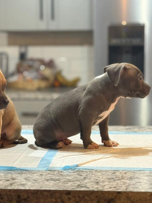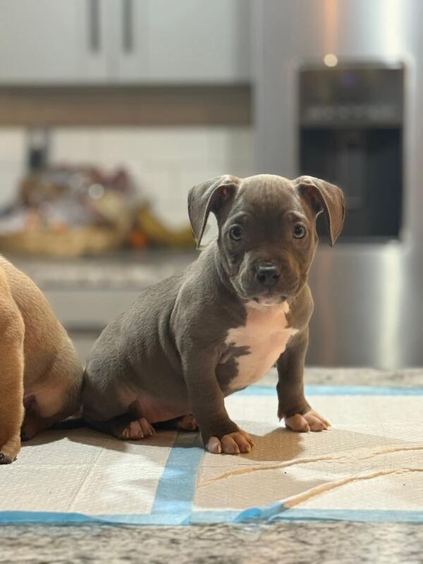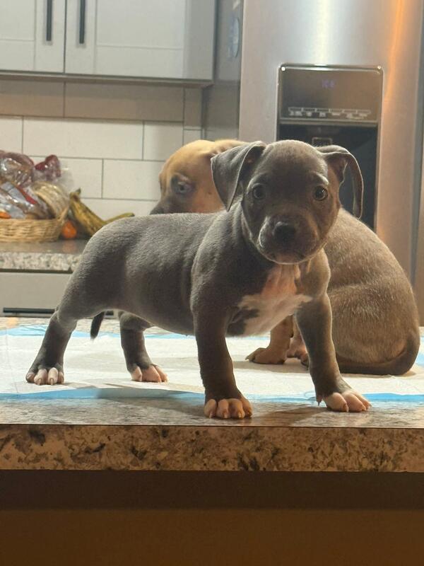 message crtnlr2690 about this ad Machamp (M-Grch BBB Heismen son) Yager (CH Kane daughter) Golden child , Grch R2G2 and M-Grch Heismen meet #bluemonsterline, CH ADK Santos and Kane 2 males and 3 blue female up for grabs Pm for info ABKC registered @highlight |
