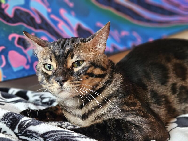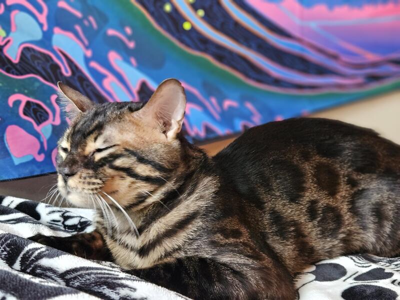 message jamieishard about this ad LeBron is a Charcoal face masked bengal with a cape. He was imported from Russia and has TICA. Intact. I would love to see a kitten or two from a litter. His temperment is so cool. Anyone can hold him and pick him up and throw him on thier shoulders. I have plenty of pictures and tica info. Would also take a female to breed with him for a kitten. LeBron James would make beautiful babies and yes that's his real name. Would be open to selling or trading |