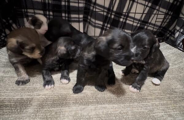 message ddbbee about this ad Schnoodles in Indiana ready November 2025. Hypoallergenic, non shedding, they are great for people with allergies. Comes with 1-year health guarantee. They have tails docked and dews removed. Will come with first puppy shot and be up-to-date on wormings. We do take deposits of PayPal or Venmo. Remaining payment due in cash on pickup order Dad is black/tan poodle, mom is salt & pepper schnauzer. |