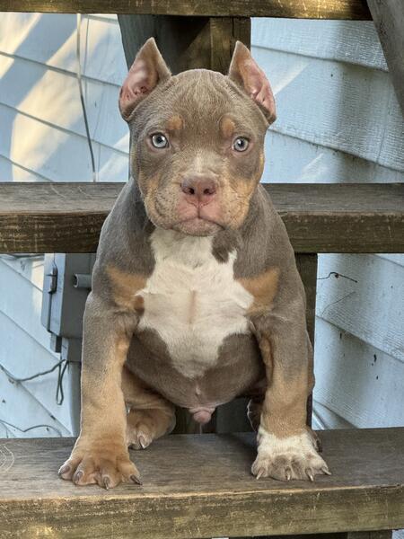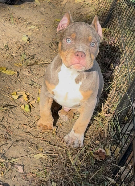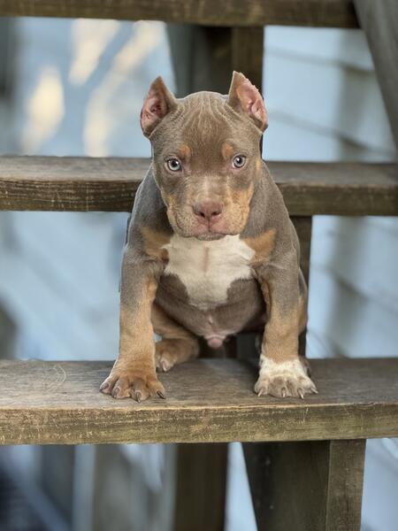 message castlesbullies about this ad 12 week old male lilac tri with ticking bully up for grabs. Abkc registered, up to date on shots and dewormed. Hes got ticking on his white on his feet. $950 text 269 6809423 |