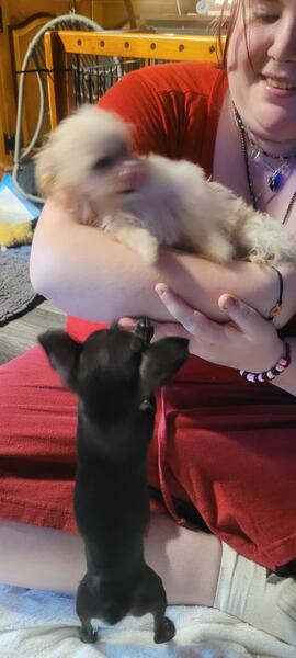 Momma is a. Hinese crested Dad is a chihuahua call or text 309-222-7412