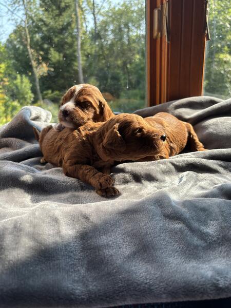 message cmichael about this ad Mini Goldendoodle puppies for sale, born August 10th, 2024 Dark red (some with white markings) Goldendoodles. Full grown adults will be smaller in size - average of 40 lbs. 3 males and 3 females available early October Located in Fredonia Wisconsin (about 30 minutes north of Milwaukee) Please text questions/inquiries to 262-483-1063 |