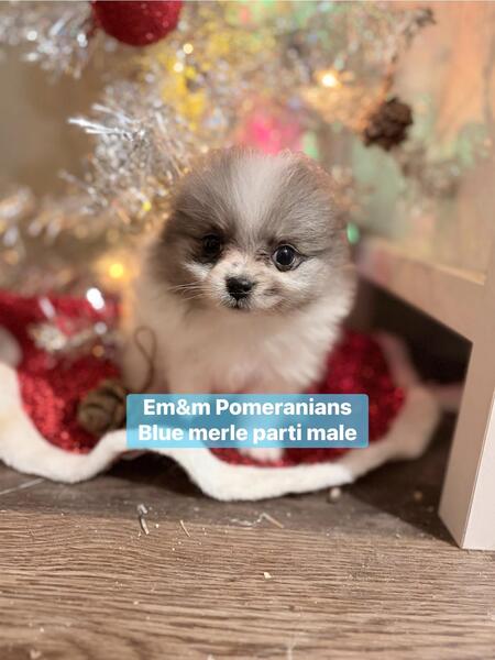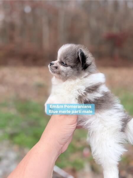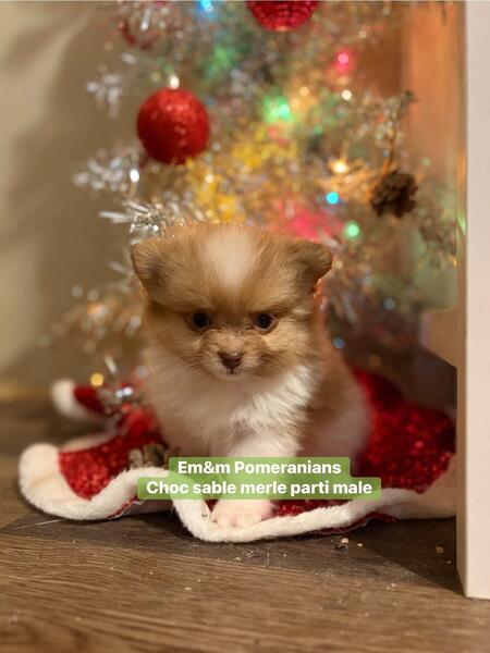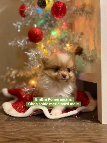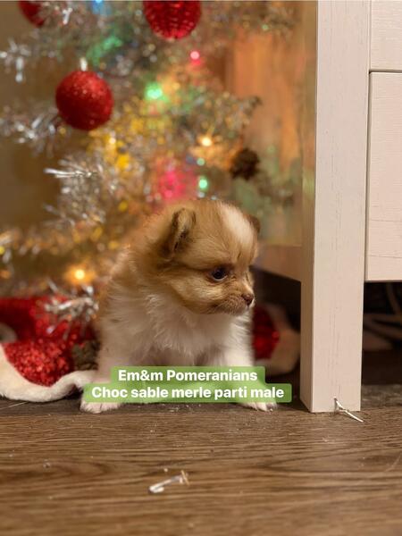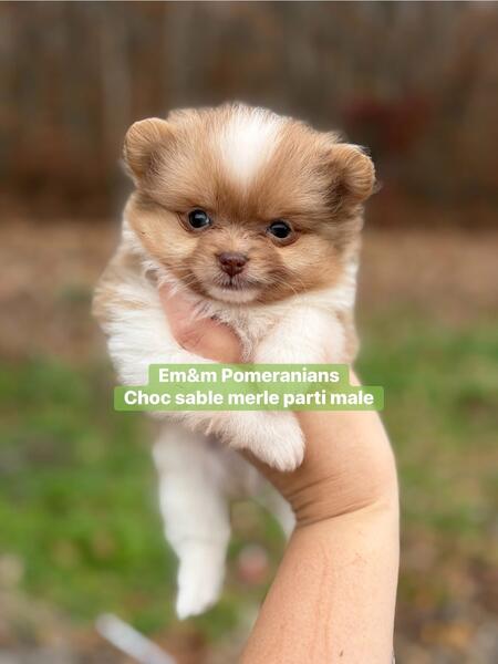 message ntz4pms27 about this ad 3 little boys available for deposit. They are 4 wks old & charting 3-6# currently. Neuter contract required. You can review it on my website www.em-mpomeranians.weebly.com Deposit is $800 Choc sable Merle $2500 Blue Merle parti $3000 Black & tan $2500 Puppies are handled daily, socialized with other dogs, cats & kids. They are litterbox trained when leaving, have one (minimally) distemper/parvo vaccine, vet exam, microchip, & deworming. One year health guarantee |