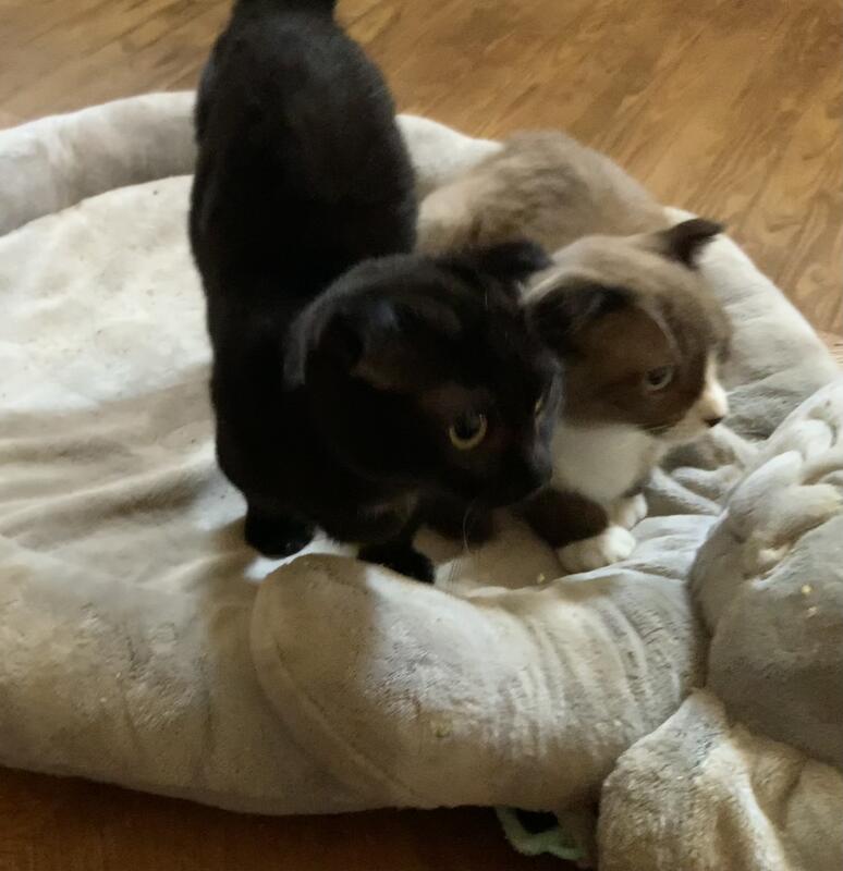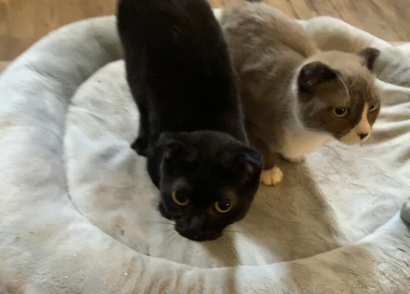 message funnyfarm2 about this ad Long leg chocolate & white female Scottish Fold. Lily $500 Short leg black female Scottish Kilt. Olivia $750 $1000 for Lily & Olivia together Will have UTD shots, vet exam & health cert. DOB 9/9/24 |