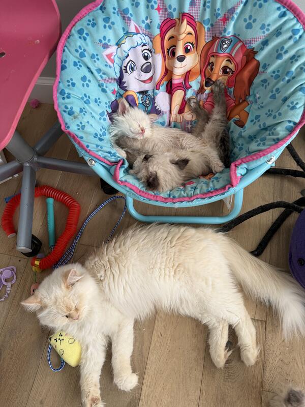 message dbwsk701 about this ad two male ragdoll kittens, 9 weeks old, dewormed, vaccinated, home raised with kids and dogs, fully litter box trained, coming with vaccination record and goodie bag, located barrington il txt only please |