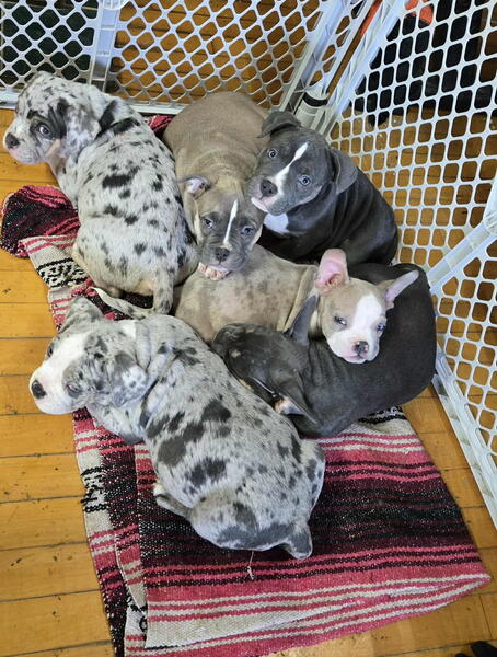 message jimmynshellie about this ad Three males, one female born 6/17/25 up to date on all shots, dewormed in microchipped Added photos of mom and dad |