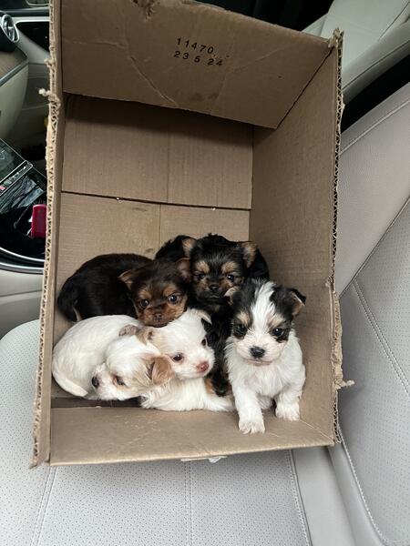 message parrot8 about this ad Eight weeks old. Estimated adult weight 4-6lbs. Both parents on-site. Pups leave with shot records. 2 Traditional Boys (Black N Tan) 1 Parti Boy (Black N White) 1 Chocolate Girl (Brown) 1 Platinum Girl (White) Text 585 695 7185 |