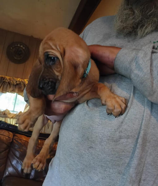 message hqfbloodhounds about this ad We have four left, Born May 20 Two males two females Both parents are our babies of course in fact Momma of this litter Ladybird is her name and the daddy name is Hanky Panky- we thought wed call this a King of the Hill litter after the tv show |