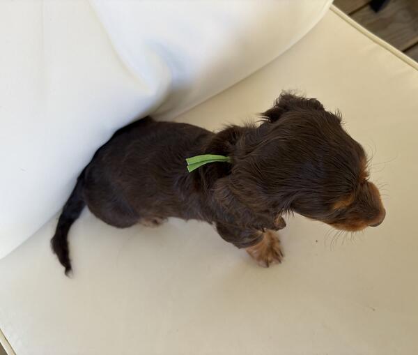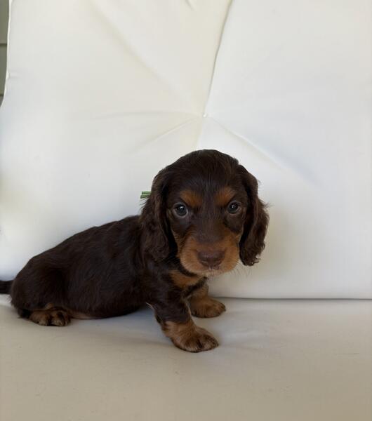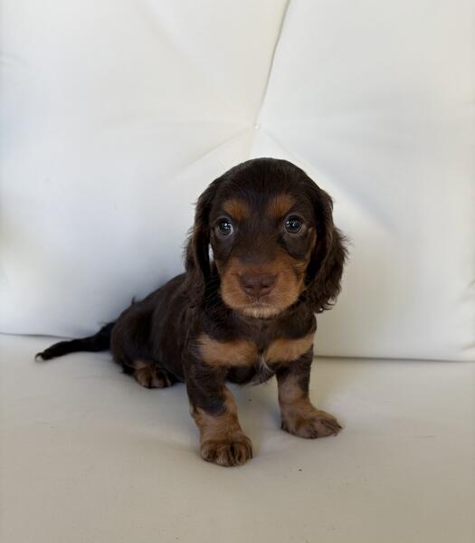 message stella3 about this ad Chocolate and tan Long Hair Male. He is a miniature Dachshund, last one of his litter. Ready to go now. Located just north of Grand Rapids, MI |