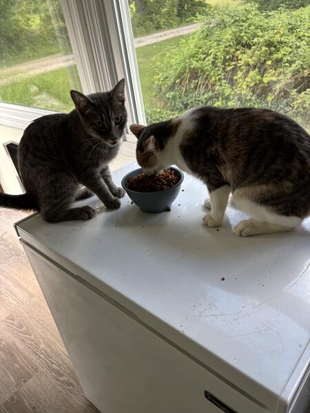 message missliss65 about this ad Two domestic short hair female kitties for rehoming. They are approx 1.5 years old. Bonded pair so they must go together. They are spayed, tattooed, and up to date on vaccines. They DO NOT like dogs which is why they are being rehomed. They have been around 6, 9, and 12 year old children with no problem, Litter box trained. $20 to ensure a good home please |