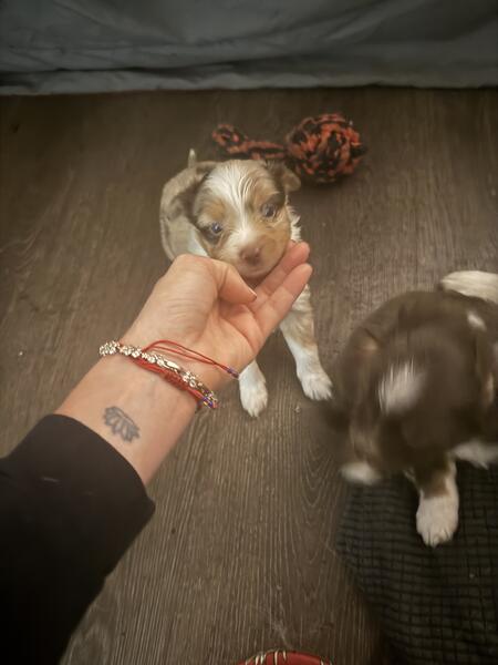 message karinavegax about this ad Pure breed Toy Australian Shepards ready for a forever home. Both parents have their papers. They were born on June 16, 2025. They only grow to be14-17 pounds and live14+ years with love. They are a very intelligent breed, their agility is understated when I say out of this world, extremely loving, attentive, and neutering. They are the happiest puppies you could ever imagine. |