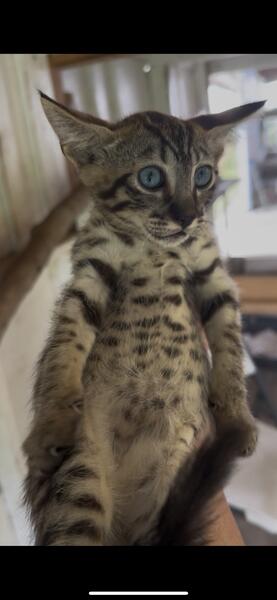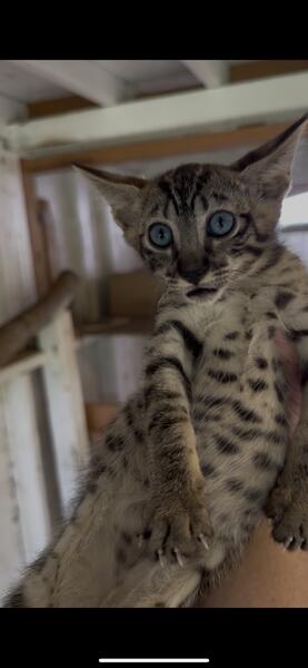 message lushsavannahcats about this ad this bluey eyed savannah boy is available and ready for his new home. He has bright blue eyes and dark bold spots. He is in Miami contact is at 305-384-5055 |