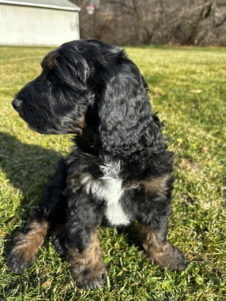 message atenciore about this ad Our Fall litter of Australian Bernedoodles is ready for their new families! They have received their first set of vaccines and have been examined here locally by our vet. We have four sweet puppies with gorgeous merle coats, and a variety of eye colors one boy and five baby girls expected to weigh around 40 lbs at maturity. At Dartmouth Doodles, we specialize in raising and training doodles with low to non-shedding, hypoallergenic coats. Our puppies thrive with loving families who can provide regular exercise and attention. We focus on raising puppies for companionship, service, and therapy, ensuring each puppy is nurtured in our home with early socialization and development. Call to set up a personal visit with the puppies, today! Visit DartmouthDoodles.com or email DartmouthDoodle@gmail.com for more information. Please ask for Chris. |