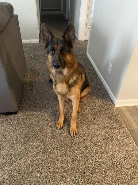 message khalilalijah about this ad Looking for a new home for my 4 year old male German shepherd I would like to start by saying nothing is wrong with him at all and the only reason I cant keep him anymore is because i recently just joined the navy and will have absolutely no at home. he is a Fantastic dog well trained, house and yard trained, stays in yard in normal neighborhoods never been on a leash unless walking out the yard. Not aggressive at all people and animal friendly he is also AKC registered with all his shots if interested please text me at (816) 305-4425 just want a good home for him he will be free |