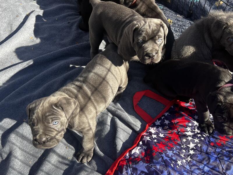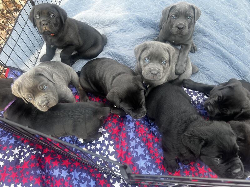 message squatchy about this ad Cane Corso puppies AKC and ICCF registered New London, NC 6 weeks old 8 males and 3 females Heavy Champsionship bloodlines Tails docked and dew claws removed Dewormed and negative fecal on 1/7 Vet visit and shots on 1/7 Handled and socialized daily Ready to go home on 1/20 5 males still available Text 910-975-9981 for more information or to reserve a puppy |