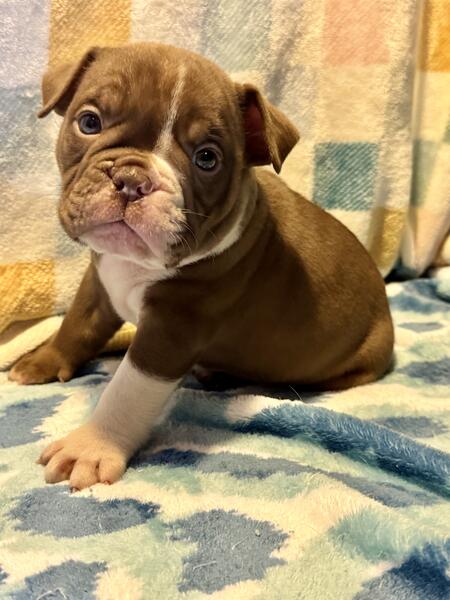 message rdukich about this ad This is Ellie Mae chocolate female $2300 Almost Heaven HillBullyz has a stunning rainbow litter of Olde English Bulldogges, blue merle female, chocolate female, chocolate tri merle male, black tri pied males, black seal pied male, black seal female. Born October 4th. They will be ready for their new homes the 11/28/25 Vet checked, utd vaccinations, dewormer, microchipped, health Guarantee. Accepting deposits now. $1600-3000 |