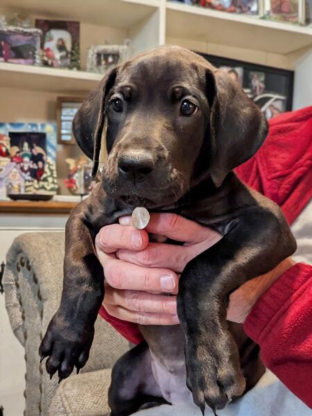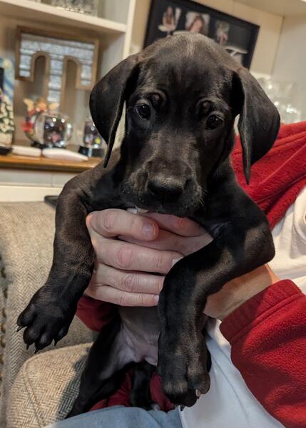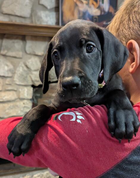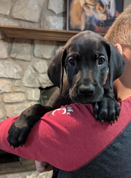 message djkl82 about this ad Akc Great Dane Black female. Born September 24 New home ready Nov. 19 Home whelped and raised. Socialized with children and other animals. Will come with: Dewclaws removed. Complete deworming schedule. First set of shots. Vet check and vet records. Appreciate AKC paperwork. Start of house training. We have 23 years of breed experience. Happy to provide additional photos, videos , FaceTime to view pups. |