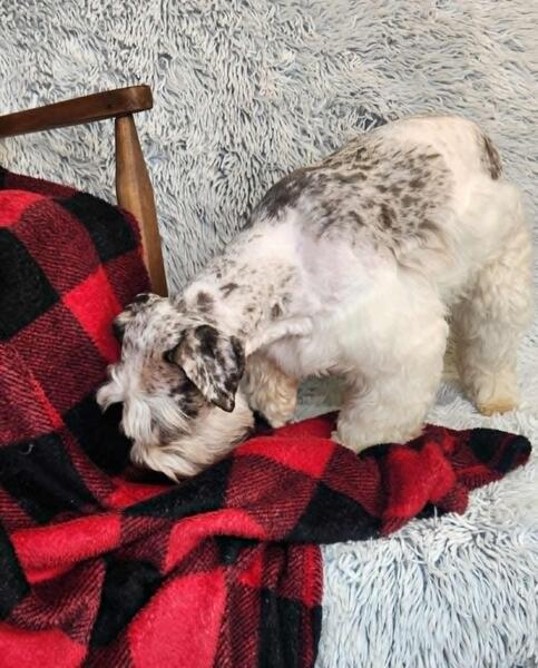 message megs0909 about this ad Liver/Parti/Merle Male House/crate trained All shots done 1 year old Neutered Raise around other dogs in home Handled daily |