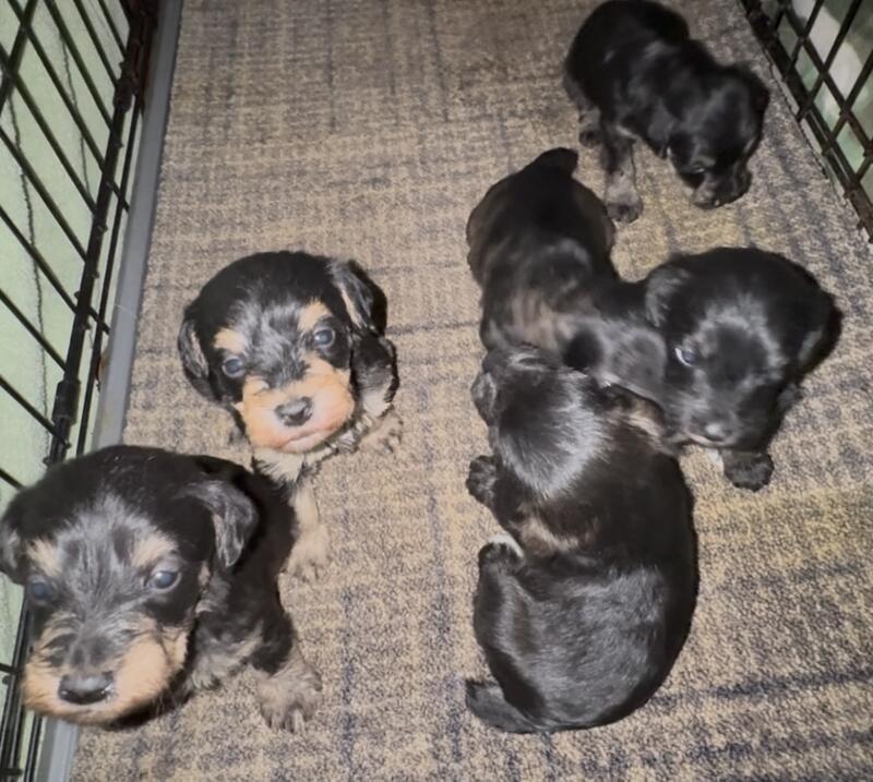 message ddbbee about this ad Hypo-allergenic, non-shedding, lovable, kid friendly, family Schnoodles. Great for big open spaces or apartments these little guys will make a great addition to your family. We have several black, some black with tan, a couple of cream and a couple black & white parti colors. The black & white parti colors are all males. Email us today for more information. We do have one black & white male, one cream female, an apricot & white parti and a black male Schnoodle that are ready now for their new home. These little guys are being trained to live their crate and to go outside to potty. We also are working on sit! They are ready to go. |