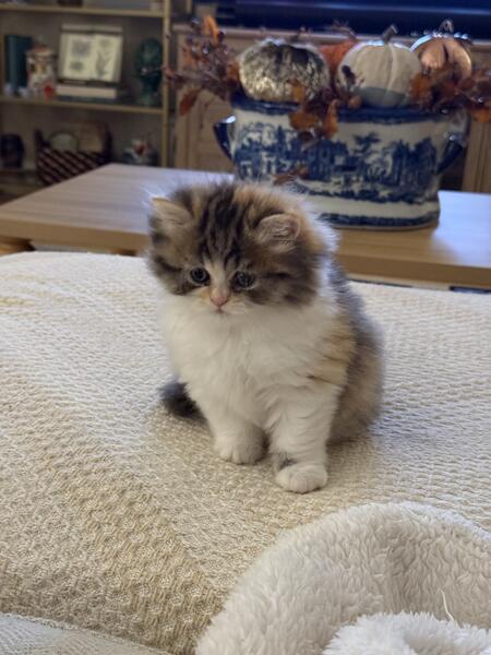 message benbrenneis about this ad we have a beautiful calico Persian kitten for sale. She has an amazing temperament and has been around kids and other cats. |
