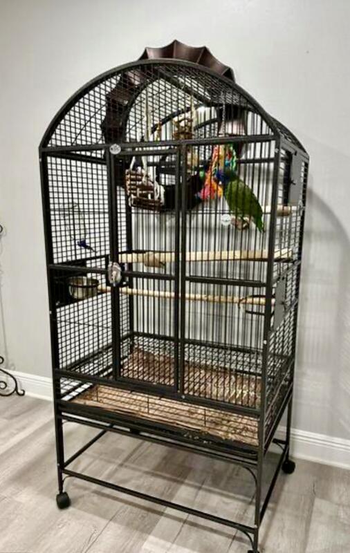 18 month old very tame and hand trained says a few words. Price includes large cage.