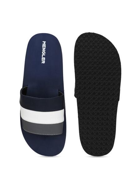 message rohinee about this ad Product Code: 10309115 A pair of navy blue colourblocked flip flops Synthetic upper material Cushioned footbed Patterned synthetic outsole This pair of flip-flops from MENGLER is an apt pick this season. The vibrant colourblocked is sure to add more to your look. Team it with a tee and shorts for a laid-back appeal. Synthetic Wipe with a clean, dry cloth to remove dust httpsmyntr.it/MJ4a6SC |
