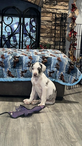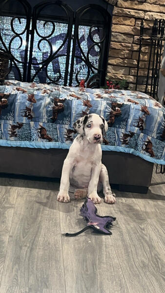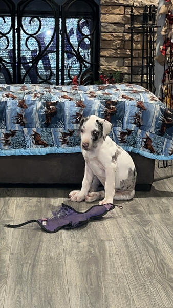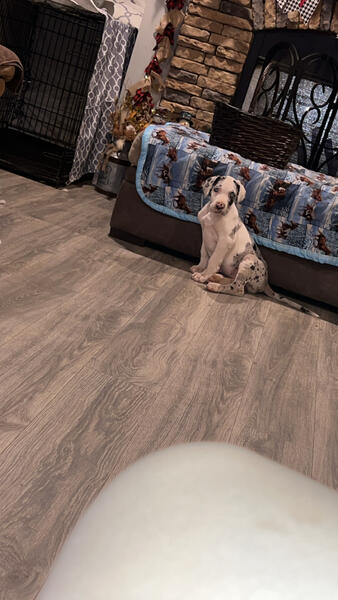 message tfsjc6269 about this ad Full blooded great Dane puppy 50% European! She has been fully vetted with age appropriate shots and a clean bill of health. Vet records will be available. She is not registered. There is a rehoming fee. Both parents are on site. Youre welcome to come see her. She comes pre spoiled just like her Mom n Dad and other siblings. |