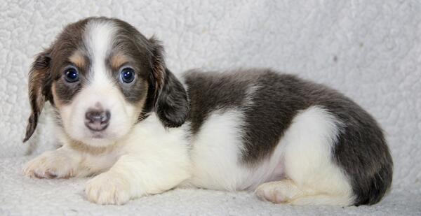 message lexisdoxies about this ad Blue/tan pie mini male long hair dachshund puppy. Will mature small. Both parents are 10 lbs. Will come with first shots and vet checked before leaving. Raised with kids and big dogs. Ready 08/02 Pet only. No papers |
