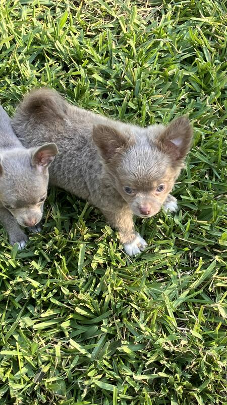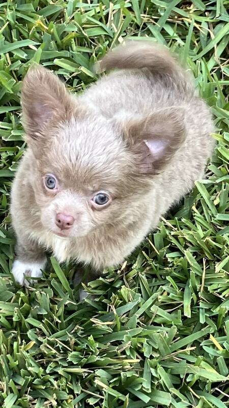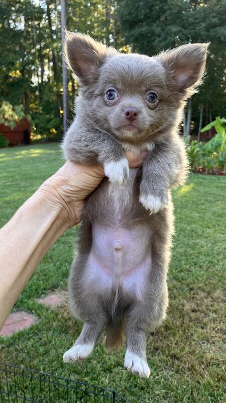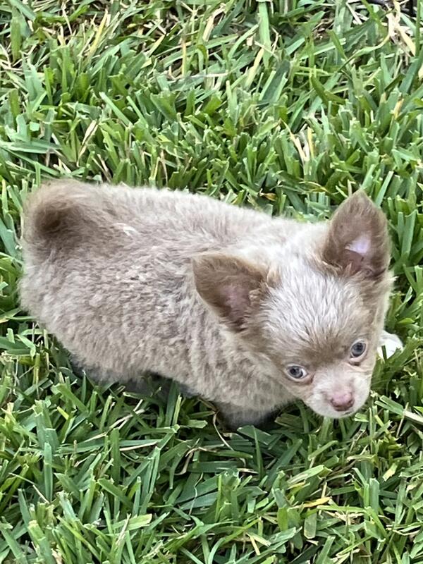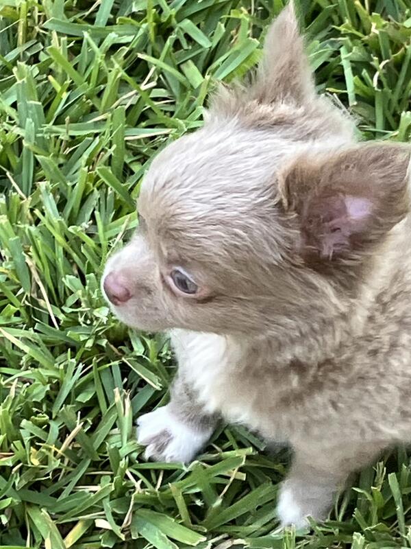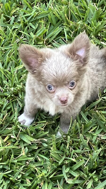 message magicpuppies about this ad Fluffy (birth Sept 1,2025) is a Handsome Long Coat PUREBRED CHIHUAHUA from AKC Bloodlines. He is healthy, great temperament, very sweet, playful, peaceful, smart, get along with other dogs. Please text 904-707-7171 for videos and to schedule a visit. |
