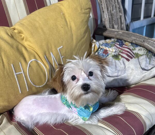 This sweet little boy is blonde n sable. He is 5 months and has had all his puppy shots. Crate training going well.