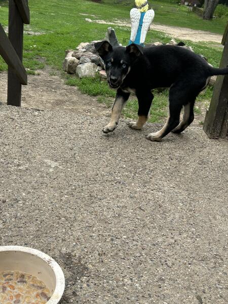message annamm about this ad I have a male Australian shepherd/husky/german shepherd mix. He was born March 22nd last of my dogs litter. He is not potty trained, but is crate trained. He is a very active puppy and loves to be outside. He would do best in a home with another dog as he is pretty clingy. He is very loving and does know the command sit and we do make him sit before giving his food. Starting to know lay down and paw( doesnt do it every time VERY food motivated. Rehoming fee applies. 574-767-1548 |