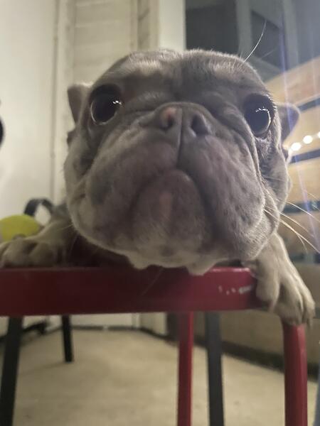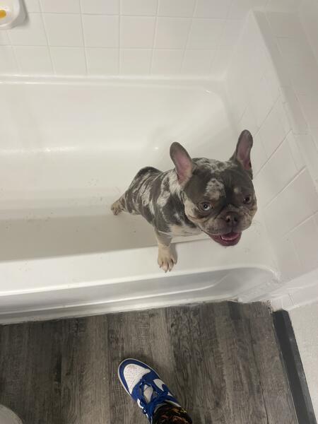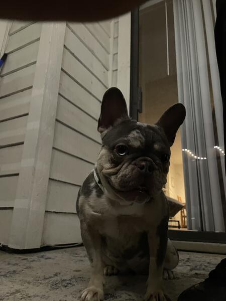 Cow print, exotic frenchie really great with kids, playful, enthusiastic