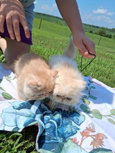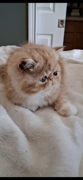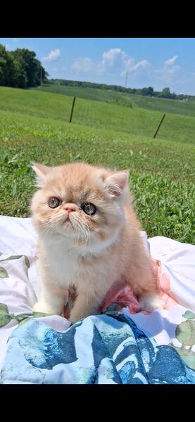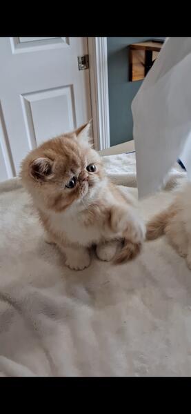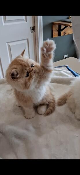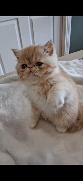 message fiveoaks2016 about this ad DEPOSIT PAID. PENDING PICKUP FOR FOREVER HOME. CFA Exotic Shorthair, red male. This boy is going to be NICE. Big, cobby body with massive features and bone. PATLEN, GRANDHEART, LIONLILY, EMPATHYCAT bloodlines. He has great potential to do very well on the show table with his body and extremely playful, confident personality. He is a special one and one of my absolute favorites. Breeding rights available for added cost. This guy is cool. DOB 6/12/25 |