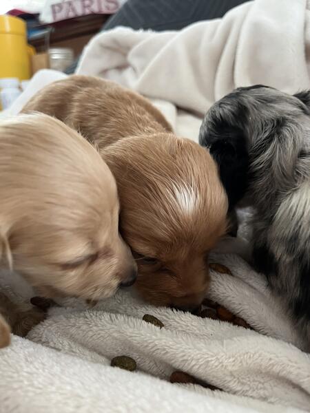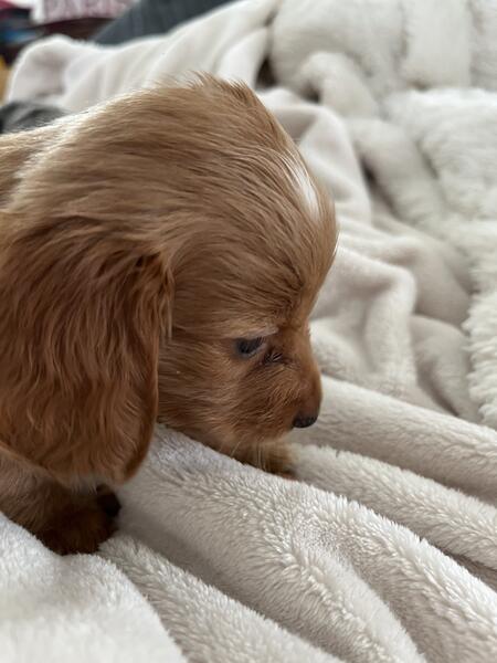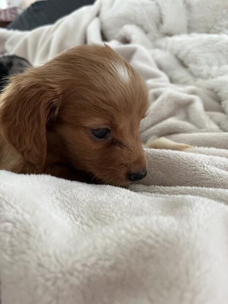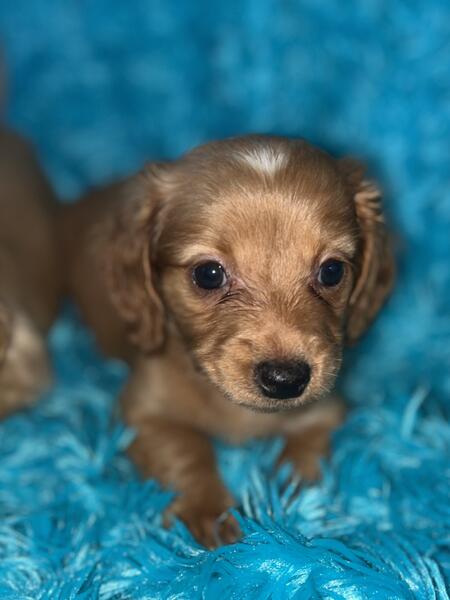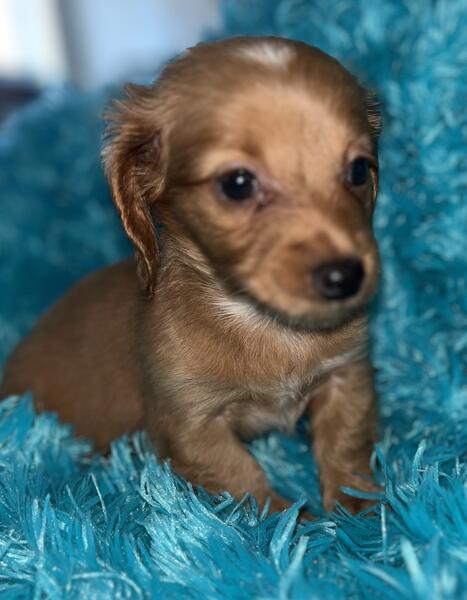 message myfathersdaughter63 about this ad You are looking at a Beautiful Full Blooded Tan Longhair Female Dachshund. Ready for adoption. Veterinarian checked, first round of shots, fully wormed, socialized around dogs, raised in our home. We take pride in raising healthy, happy dachshund puppies. Our puppies are raised on our Century Farm in a home environment. No what you wish to call them, dachshund, doxie, wiener dog, hot dogs, low rider, or even carpet shark a dachshund becomes a member of your family once you show it the love and care it deserves. A dachshund puppy will quickly win your heart. Our adult dachshunds are from 9 pounds to 12 pounds. However, we can not guarantee what your puppys adult size will be. A deposit is required to hold your puppy. Dachshunds have been my passion for as long as I can remember. I have five dachshunds that I have rescued. One has cancer and another is paralyzed. It is my privilege to give them their best life. message myfathersdaughter63 about this ad |