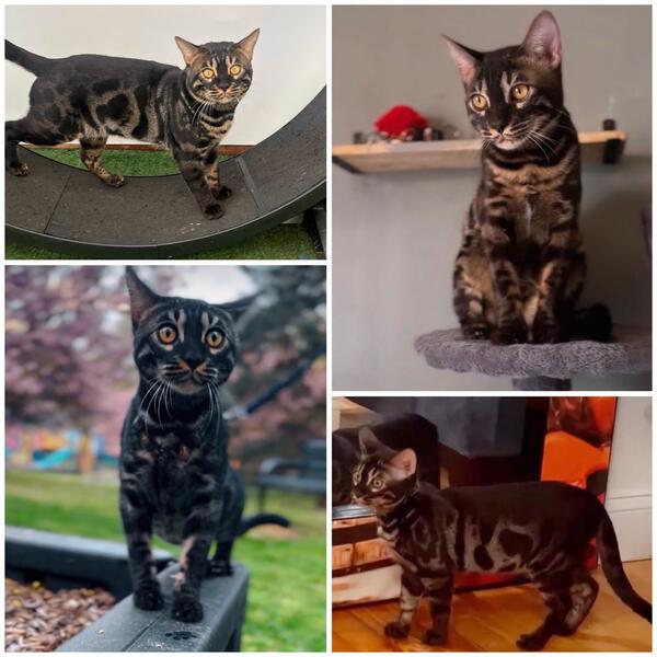 message nadinesev about this ad Meet Boo! shes a charcoal Bengal who carries both brown and snow. She has beautiful donut rosettes who will closely resembles her mothers. She will be available in December to bring home. She would do perfect as pet/show kitty or would do amazing in a small cattery program. She also has a brown Bengal sister named Jinx who is also available. We do offer siblings discount if taken home together. Parents are last photos. what we provide: *Spay/neuter (unless spoken about breeding rights with) *TICA registration *first vaccines *deworming *bloodwork *parasite testing *1 year health guarantee + contract *going home goodie bag *lifetime of chat support |
