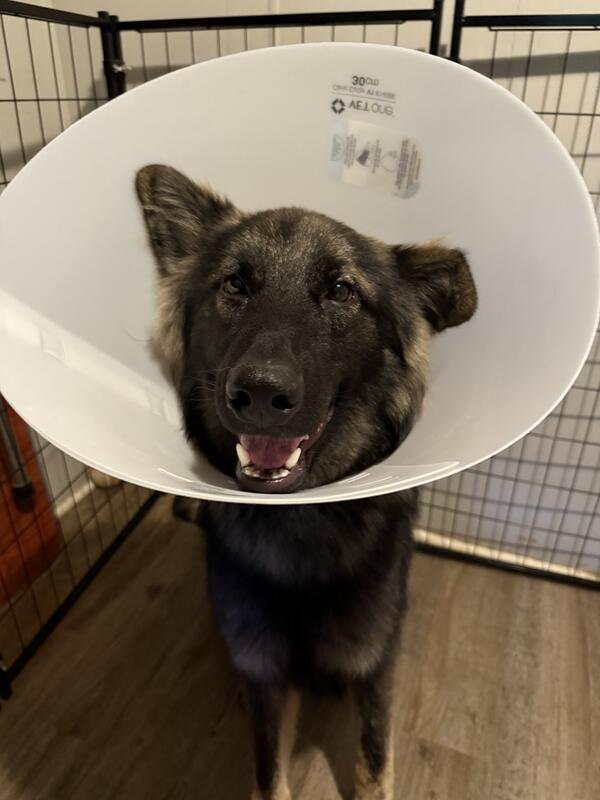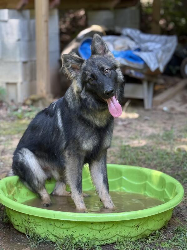 Neutered 11 month old male, long coat GSD. Super sweet! Up to date on all vaccines & preventatives.