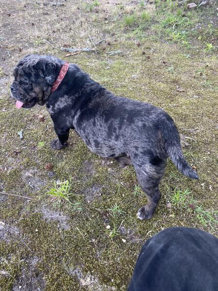 message carolinabulldogs2025 about this ad Olde English bulldog 3 years old she has had 2 litters very healthy pup she does still have her tail she is olde English not English she is very healthy |