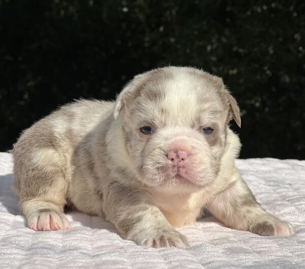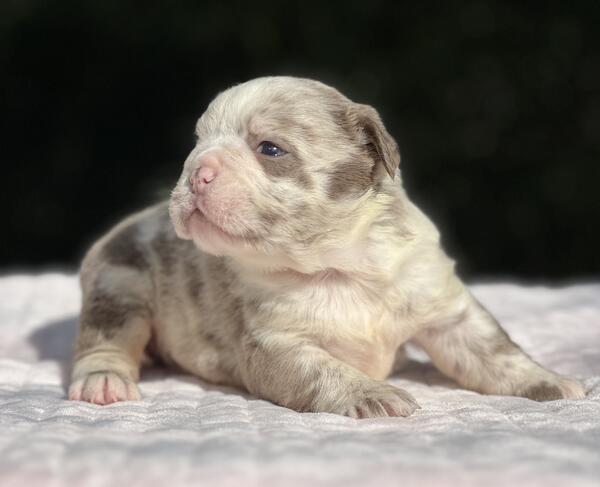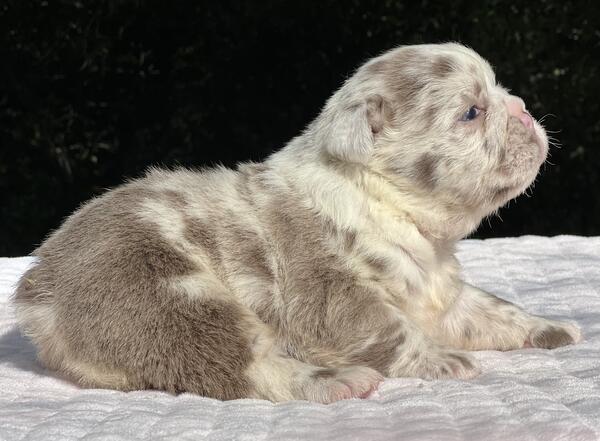 message frenchiekisses about this ad Adorable Lilac Merle Fluffy English Bulldog Female Bianca Meet Bianca, our stunning lilac merle fluffy English Bulldog girl! Shes truly one of a kind with her soft, plush coat, mesmerizing merle pattern, and the sweetest personality to match. About Bianca: Breed: English Bulldog (Full Fluffy) Color/Pattern: Lilac Merle Gender: Female Name: Bianca Coat: Soft fluffy coat rare and luxurious Temperament: Playful, gentle, loves cuddles Health: Up to date on shots, vet-checked, and comes with a health guarantee Parents: From top-quality lines with excellent structure and temperament Bianca is raised in our home with plenty of love and socialization. She loves both playtime and snuggle time. Whether youre looking for a gorgeous family companion or a high-quality addition to your breeding program, Bianca will steal your heart the moment you meet her. |