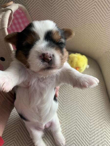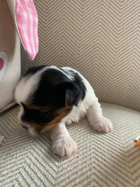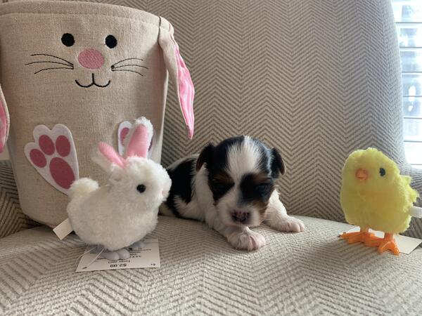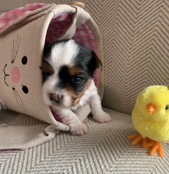 message luvfuranimals24 about this ad This puppy is sold I have one male available. This is little river she is a super sweetie born Feb6,2025. She is currently 6 weeks old. Her and her sister Charlotte love to play together and are learning how to eat feim a bowl now. River will be ready in a few weeks just after she turns 8 weeks old. She is tricolored and has a beautiful unique pattern on her face. She will come with health exam, health certificate, shots and a puppy package. I have been breeding for over 8 years. I have many references and you can meet her now I can also face time. Please send me a message if you want more info on her. This litter is only the two girls so I know they wont last long. Price just reduced. She is ready for her new home. Shots and health certificate done. Thank you Sherry |