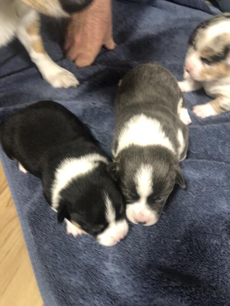 message sjnst8028 about this ad Looking for loving homes for two 9 week old female, Corgi/Miniature Aussie puppies. Mother of pups is Blue Merle Welsh Corgi and weighs 25lbs, Stud is 3/4 Corgi & 1/4 Miniature Australian Shepherd and weighs 12lbs. Puppies have Florida Certificate, have had 1st of puppy shots, tails docked, dew claws removed, dewormed and currently being crate trained and to potty outside. Puppies raised in home, receiving lots of love from family and others! Cash only. |