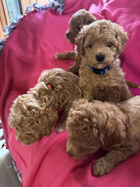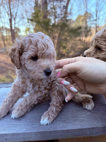 message elliesgoldendoodles about this ad I have a litter of F1b micro mini goldendoodles hypoallergenic non-shedding goldendoodles puppies born 01/23/25 ready to go after 03/18 These little ones will not be more then 12 pounds full grown If you are interested, please send me an email also I have a Facebook page Rita and Curlys Labradoodles you can check it out or give me a call for information 757-775-0623 They will be completely dewormed and have there 1st set of shots and a complete vet exam from head to tail they are healthy and will be ready to go at 8 weeks old They will come with veterinary records A blanket and a toy also some food to get them on their feet |