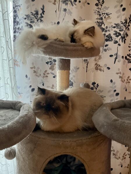 2 Beautiful bonded Himalayans. Seal point male. Tortie point female. Both are fixed. 3years old.
