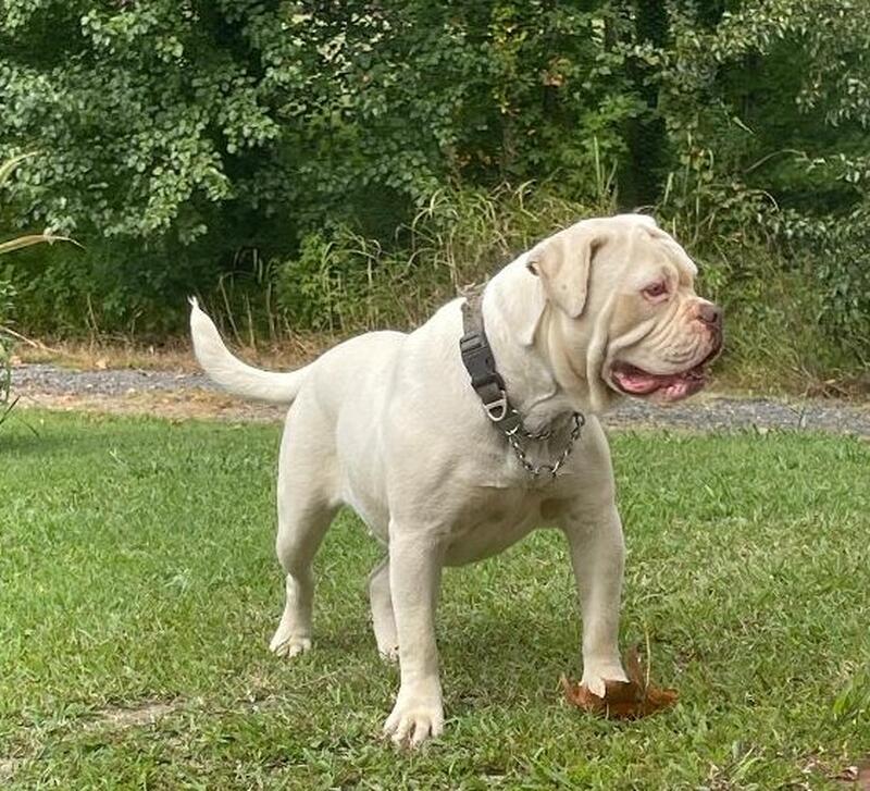 message fullofbull about this ad Female American Bulldog little over a year old very friendly gets along with other dogs NKC registered just came into heat on Nov 3rd 2025 she is the white one her parents are also pictured |