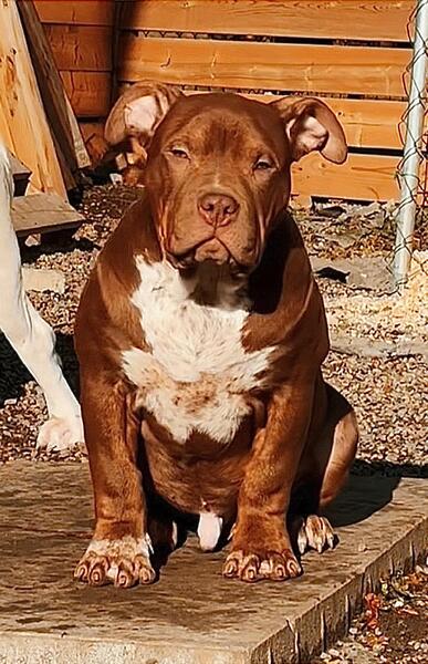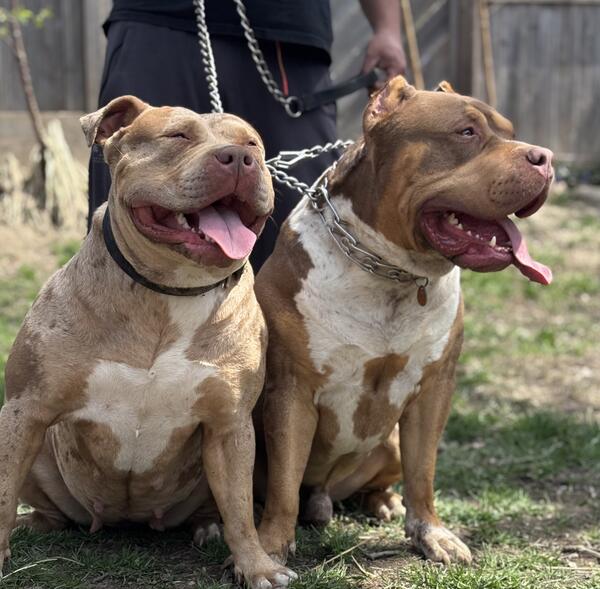 message northbullypits about this ad Comes with first set of shots and deworming Puppy starter package 2 year genetic health guarantee Sex: Male Colour: ticked chocolate ghost Tri Class: XL Sire: NBPs ABKC Valentine chocolate Tri Class: XL Weight: 125lbs Dam: NBPs ABKC Sahara chocolate Merle Tri Class: XL Weight: 105lbs Price: 1500 Shipping available Text Roger Angeles at 6477181815 for more details, videos, pictures etc. |