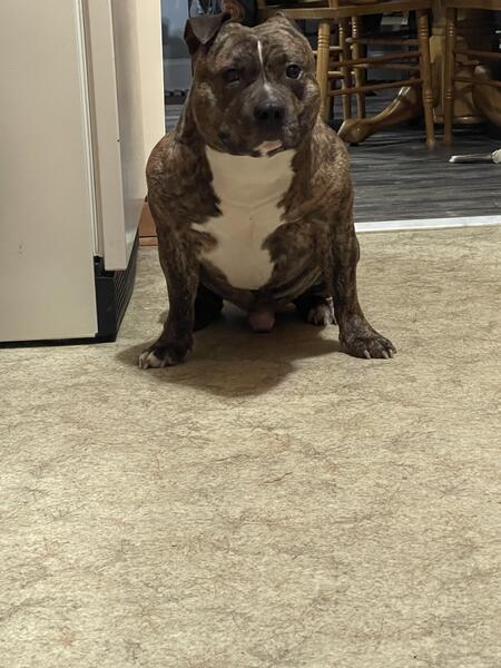 Brindle American bully male for stud, fully ABKC papered.