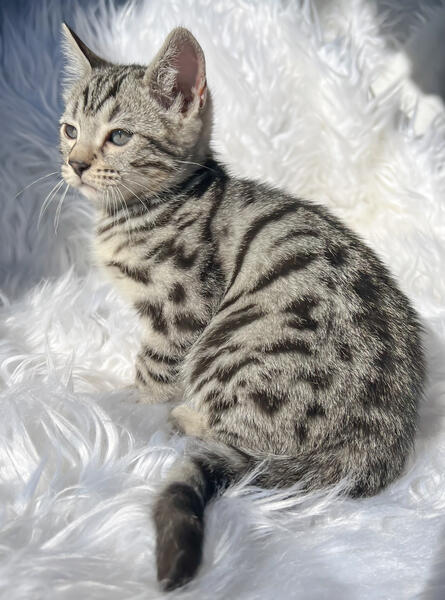 message myexoticcatscom about this ad For sale. Stunningly beautiful, male silver Bengal kitten. Saber has been vet checked and is ready for his forever home. Dam is a Silver Marble Bengal, Sire is a Brown Rosetted Bengal. Saber weighs between 2.5-3lbs. He looks bigger in pics due to photos being close-ups. He has a sweet personality, and will be a big boy! Saber will make a wonderful new addition to your family. For more information please visit www.myexoticcats.com and/or text/call (614) 400-2409. All of our kittens are TICA registered, come well socialized with other pets and children. They are vet checked, tested for FELV/FIV, with a parasite-free fecal exam, and age-appropriate vaccines. Bengal kittens are also accompanied by a two-year health guarantee and first month's flea protection and one month free pet insurance. You have the option of having your kitten spayed/neutered for $200.00 before pick up which also includes microchipping and 1 year rabies vaccine OR you may take your kitten home on a spay/neuter contract and spay/neuter with your vet by 6 months of age. We let you choose. Breeder prices available upon request. For more information please visit www.myexoticcats.com and/or text/call (614) 400-2409. message myexoticcatscom about this ad |