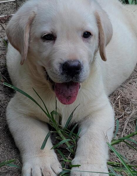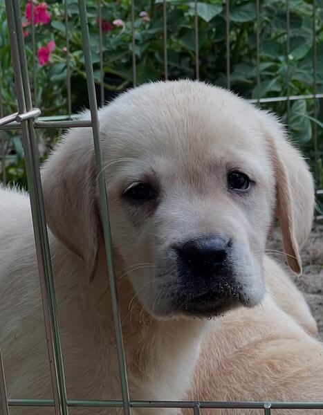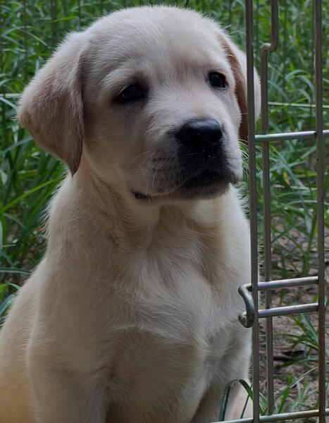 Very calm, sweet yellow male English Labrador puppies. Ready end of August. Call or text 704-774-7471.