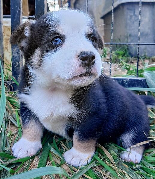 message hnpck6999 about this ad Purebred Corgi puppies, 2 males, one female, all tri color, one male has blue eyes, tails docked, first shots and several dewormings done, will come with a puppy care kit and vaccination record |